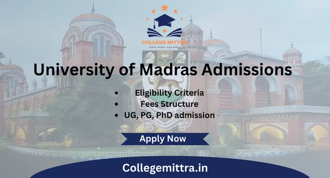 Madras University admission 2026​: Start Date, UG, PG, MBA, PhD, Last Dates, Fees Structure & Process